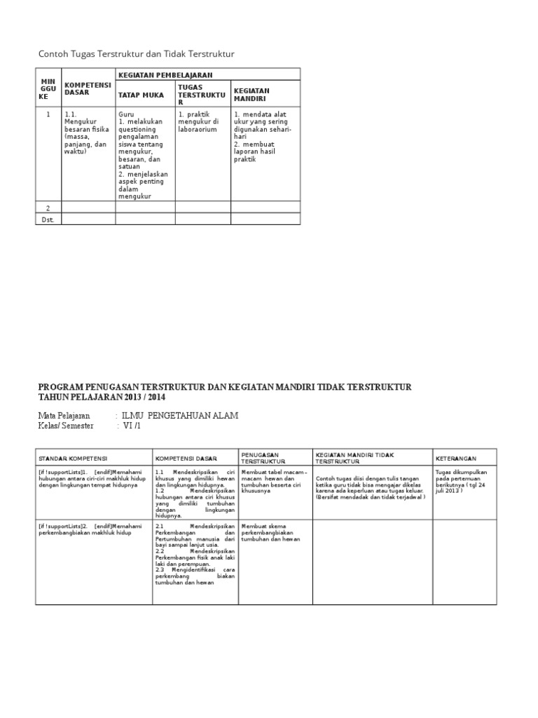 Contoh Tugas Terstruktur Dan Tidak Terstruktur Sd Kami from imgv2-2-f.scribdassets.com Contoh tugas terstruktur dan tidak terstruktur sd smp sma ini akan menjadi topik bahasan saya pada postingan kali ini. Terdapat 2 jenis tugas siswa jika dilihat dari Unduh, download program terstruktur dan kegiatan mandiri tidak terstruktur sd/mi kelas 1, 2, 3, 4, 5, 6 mapel pai dan penjas Kompetensi inti (ki) 1 : Pengertiannya adalah terstruktur adalah teratur dalam penugasan dan pengembaliaan tugas yang diberikan kepada siswa tercatat secara teratur waktu penyelesaian pasti pada pertemuan, tanggal tertentu yang sudah ditentukan. Pemberian tugas kepada siswa adalah salah satu langkah evaluasi pembelajaran. Pengertian tugas terstruktur dan tidak terstruktur riyanpedia. Contoh tugas terstruktur sd kelas 5 kurikulum 2013.