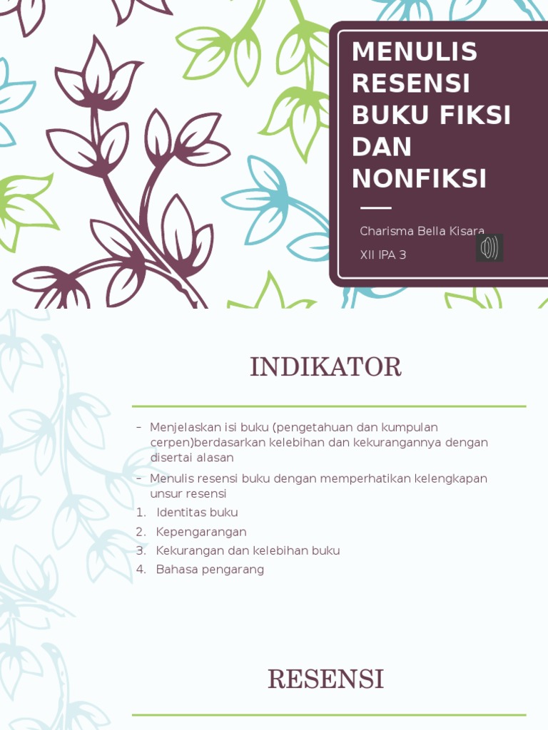contoh resensi buku fiksi dan non fiksi from imgv2-2-f.scribdassets.com Penjelasan resensi buku nonfiksi setelah melihat contoh resensi buku non fiksi tentang creative director, ada beberapa unsur penting yang wajib ada di dalam resensi buku, yang akan dijelaskan sebagai berikut. Buku fiksi adalah buku yang isinya baik cerita, plot, karakter, kejadian, dan latar diambil dari hasil penggabungan imajinasi. Menulis resensi standar sebenarnya adalah pekerjaan yang mudah bila kita mengetahui bagaimana sistematika penulisan resensi yang baik dan benar. Ix b/24 tanggal pengumpulan : Perbedaan buku fiksi dan non fiksi dapat dilihat dari substansi bukunya. Ix b/24 tanggal pengumpulan : Contoh buku fiksi adalah novel, komik dan cerpen. Tugas ppt bahasa indonesia buku fiksi dan non fiksi.